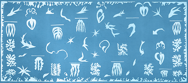 Océanie, la mer, and its pendant composition, Océanie, le ciel, - Oceania, The Sky - are screen-printed linen wall-hangings created between 1946-48, based upon cut-out paper maquettes reflecting on Matisse's memories of a 1930 voyage to Tahiti.