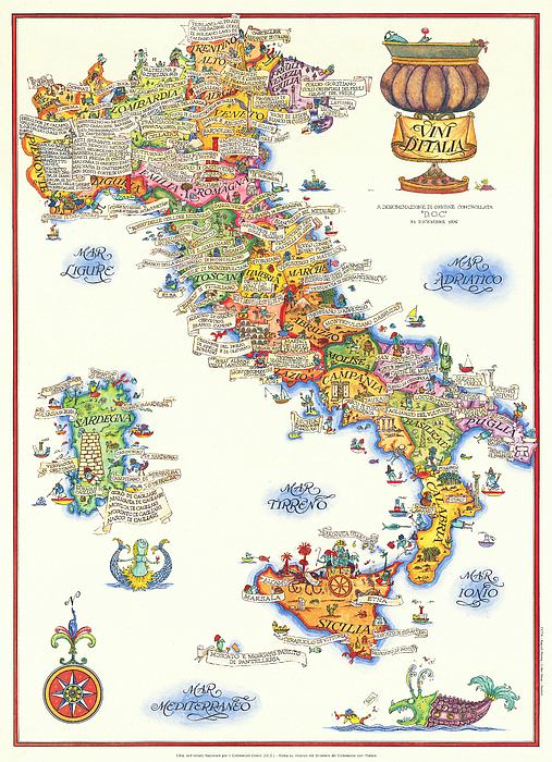 Wines of Italy - Vini D'Italia - Vintage pictorial map from 1976.